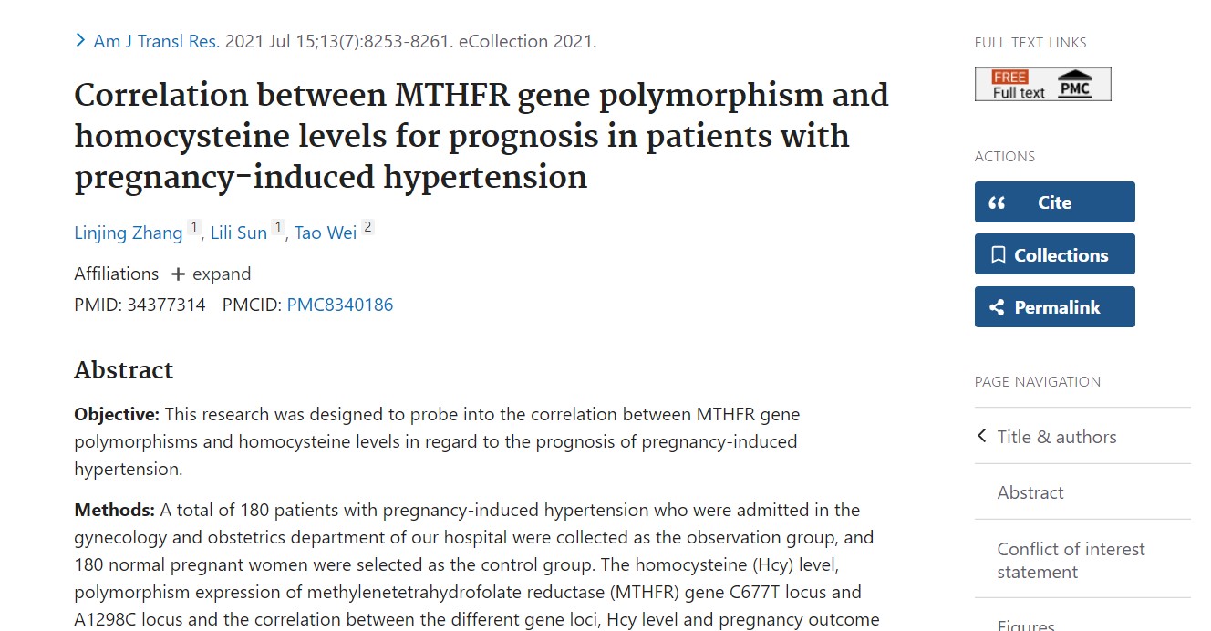 ورقة بحثية عام 2021 في المجلة الأمريكية للترجمة حددت الأبحاث بالضبط كيف يقوم MTHFR 677TT بتحريك الميزان نحو الحمل ارتفاع ضغط الدم (غ).