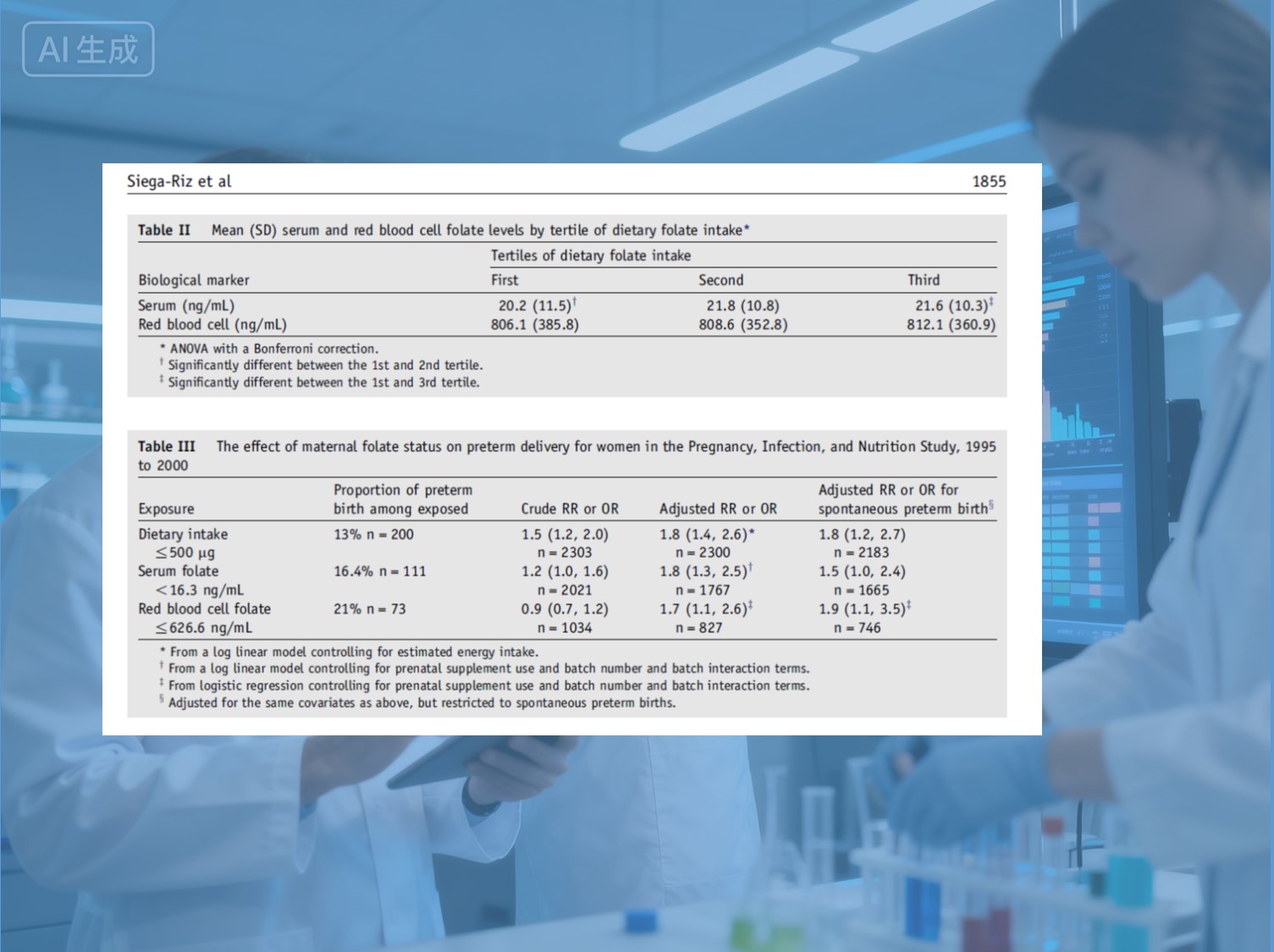 [1] سيجا-ريز إيه إم، وآخرون. حالة حمض الفوليك في الأثلوث الثاني والولادة المبكرة.أنا J Obstet Gynecol.2004;191:1851-7.
