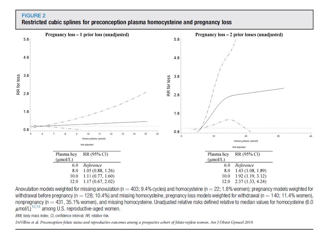 · علاقة واضحة تعتمد على الجرعةمع الهوموسيستين (Hcy): بين النساء اللاتي تعرضن لخسارتين سابقتين، كل منهما 2 ميكرومول/لتر ارتبطت الزيادة في حمض الهيدروكلوريك (على سبيل المثال، من 6 ميكرومول / لتر إلى 8 ميكرومول / لتر) بـزيادة بنسبة 43% في خطر الإجهاض.